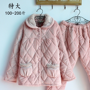 冬季加厚加棉睡衣中老年加肥加大码200斤 保暖珊瑚绒夹棉家居服女